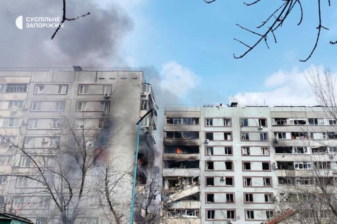 Російські війська 22 березня обстріляли місто Запоріжжя, пошкодили ракетами дві багатоповерхівки, постраждали два десятки людей.