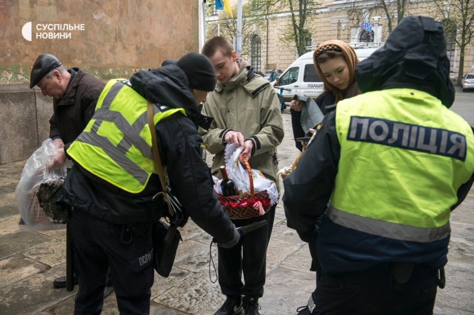 Біля входу на територію як Верхньої лаври, так і Нижньої чергували поліцейські. Вони перевіряли речі відвідувачів та документи.