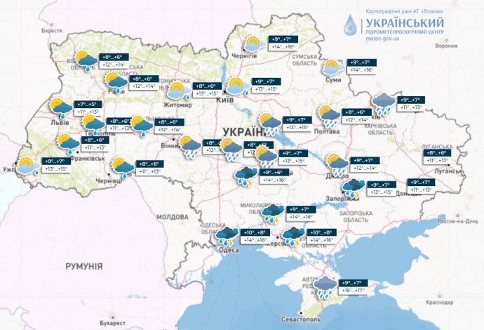 Деталі: Температура повітря в більшості областей України очікується протягом дня +12+16 градусів, на заході +8+11 градусів (на Закарпатті +18 градусів).