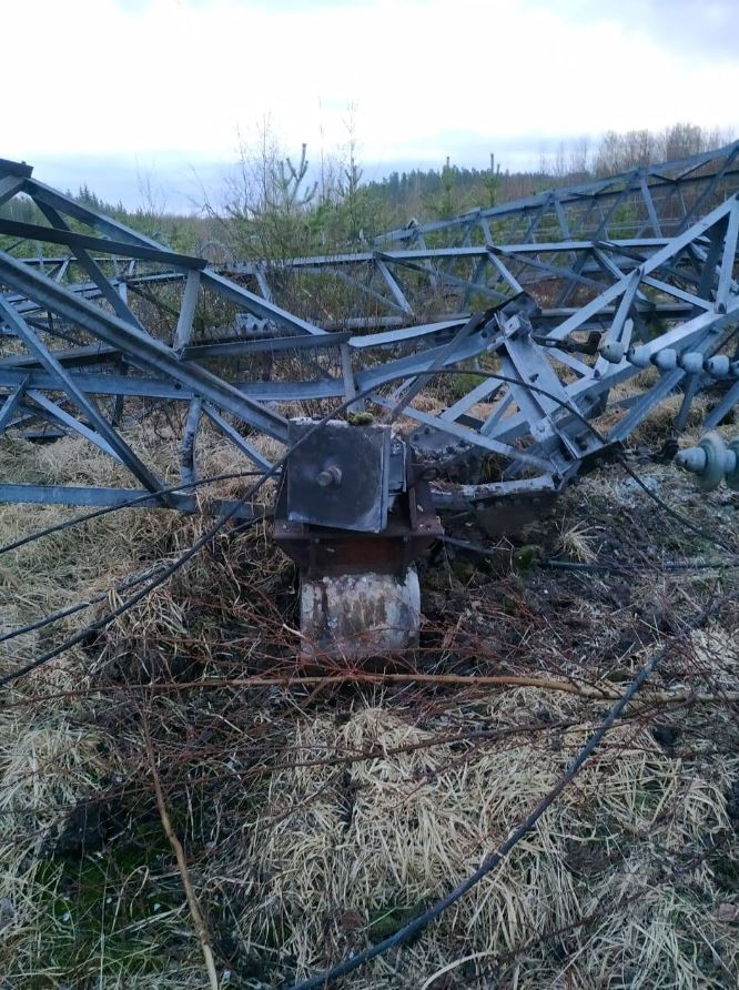 Окупанти заявили, що в Ленінградській області хтось підірвав опору лінії електропередач