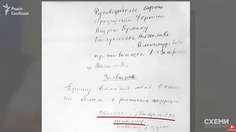 Джерело: "Схеми" (Радіо Свобода) з посиланням на лист-заяву за підписом Богуслаєва на ім’я керівника Офісу президента Андрія Єрмака, який є у розпорядженні редакції
