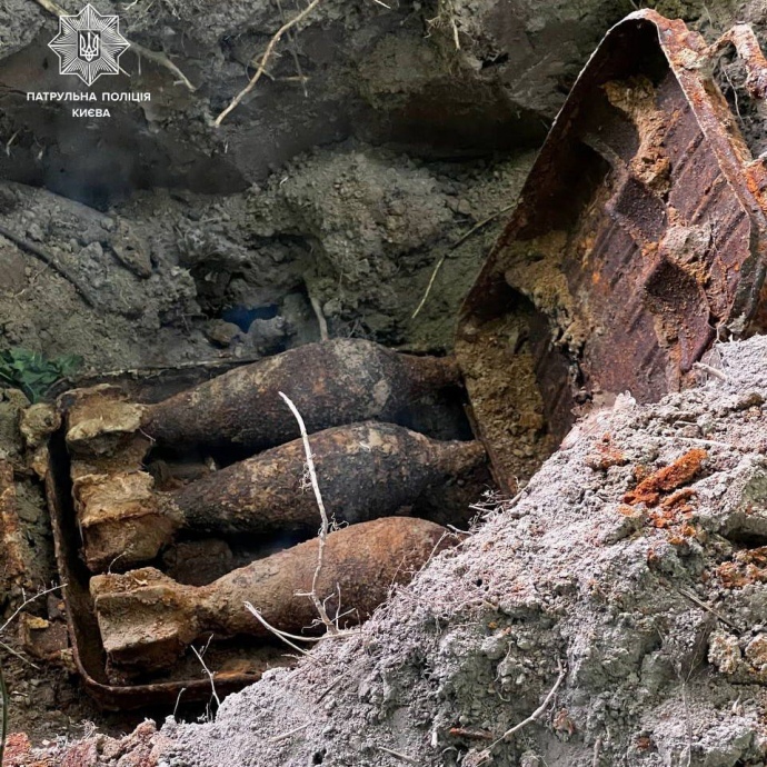 У Голосіївському районі Києва чоловік натрапив у своєму городі на 3 предмети, ззовні схожі на бойові снаряди, вибухотехніки виявили ще 12 таких мін.