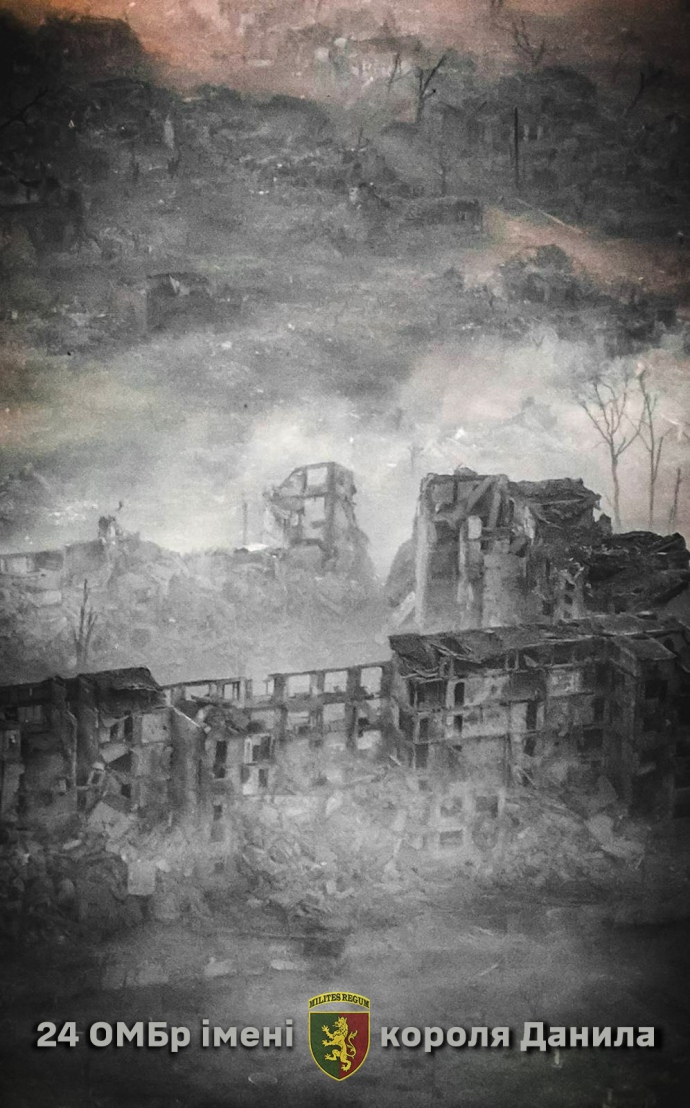 24 ОМБр імені короля Данила оприлюднила фото зруйнованого внаслідок нападу Росії Бахмута.