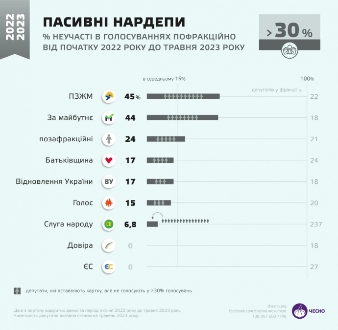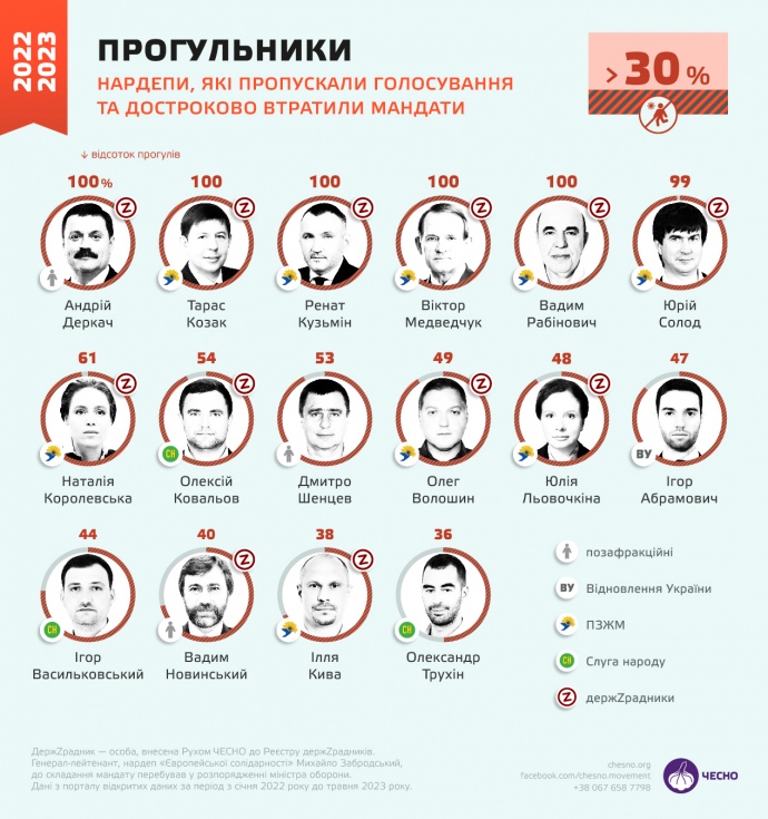 У "Чесно" наголосили, що до лав прогульників не вносили депутатів, які захищають країну зі зброєю в руках, а також тих, хто перебуває за кордоном у складі постійних парламентських делегацій.
