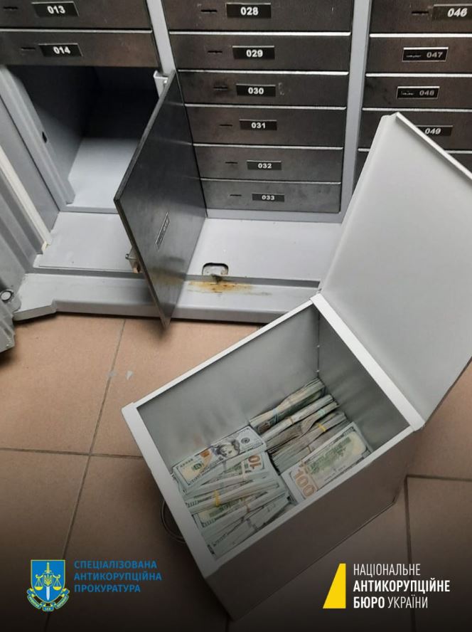 Дослівно: "НАБУ і САП під час обшуку вилучили велику суму готівки у майже пів мільйона доларів США, сховану учасниками злочину у справі за підозрою Голови Верховного Суду.