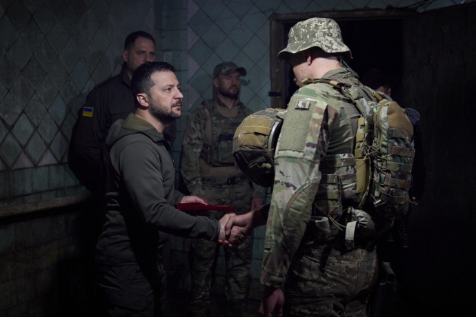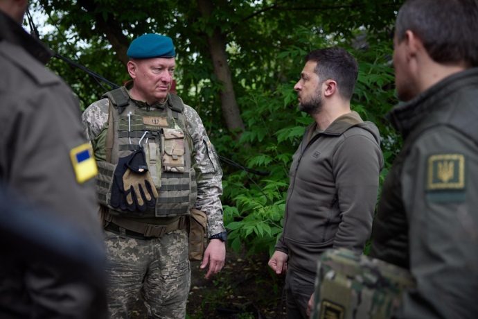 Дослівно: "Наші захисники. Фронтова ділянка в смузі оборони Вугледар – Мар’їнка. Сьогодні (23 травня - ред.) я тут, щоб привітати наших воїнів із їхнім Днем морської піхоти ВМС ЗСУ. Слава кожному і кожній, хто захищає Україну".