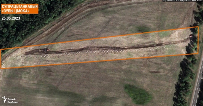 Деталі: За 20 кілометрів від кордону з Україною та за 10 кілометрів від Гомеля біля села Калініна з’явилися військові оборонні споруди, до складу яких входить лінія з протитанковими "зубами дракона". Її вже прозвали "Лінією Хреніна".