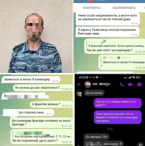 Використовуючи вразливий психоемоційний стан потерпілих, підозрюваний пропонував їм перерахувати на його особистий банківський рахунок кошти начебто на бензин для евакуації розшукуваних бійців, закупки ліків для них, тощо.