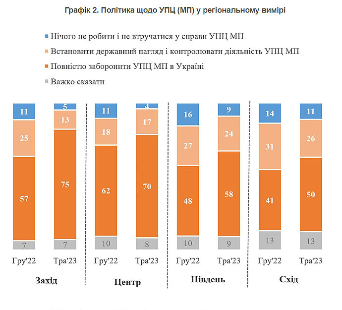 Зокрема, з 54% до 66% стало більше тих, хто вважає, що ця Церква має бути повністю забороненою в Україні".
