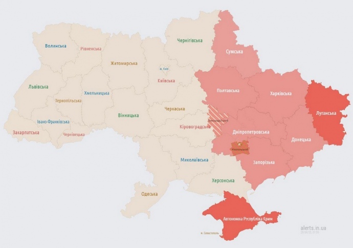 Дослівно ПС: "Загроза застосування балістичного озброєння – Сумська, Полтавська, Харківська, Дніпропетровська, Херсонська, Донецька області!"