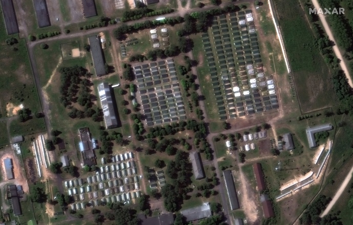 Супутникові знімки технологічної компанії Umbra демонструють нарощування обладнання і транспортних засобів у Білорусі у військовому гарнізоні біля населеного пункту Ціль Осиповського району.