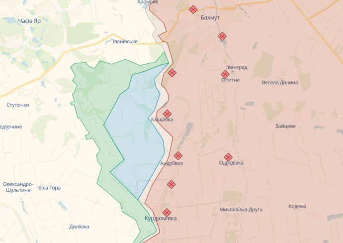 За словами речника, українські війська ведуть наступальні дії північніше та південніше міста Бахмут: "У ході ведення Силами оборони наступально-штурмових дій противник вимушено відійшов з позицій в районі Андріївки".