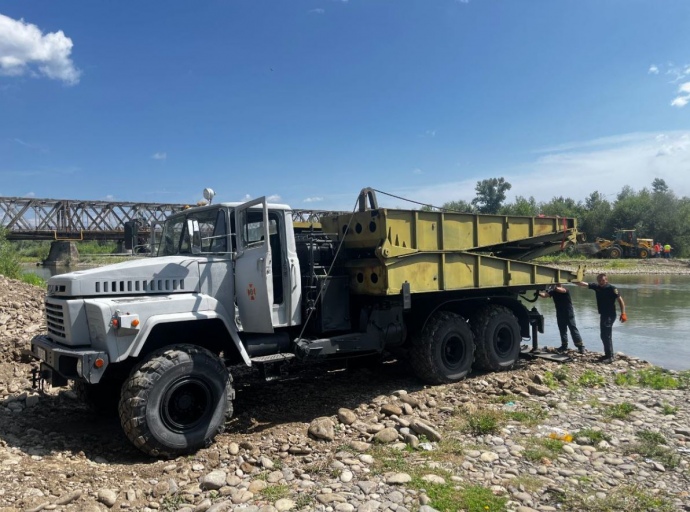 Рятувальники встановлюють механізовану переправу у Тячівському районі Закарпатської області, де напередодні обвалився міст.