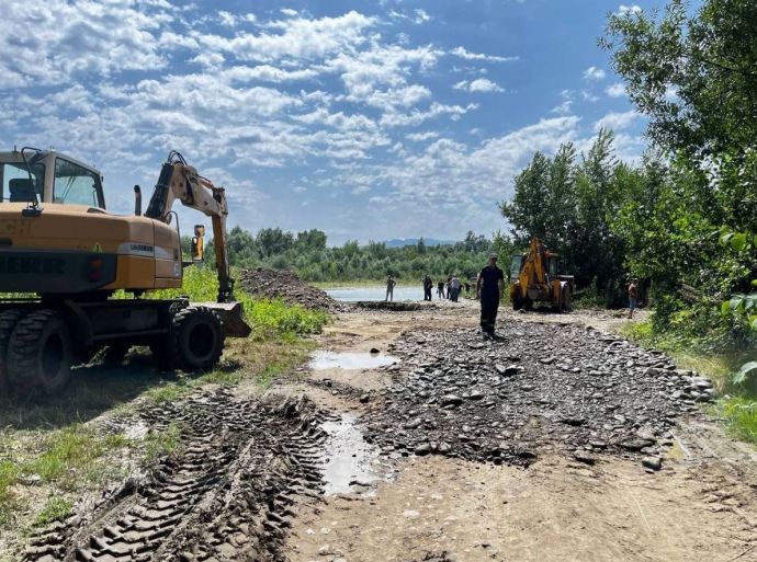Комунальними службами здійснюється навантаження та підвіз піщано-гравійної суміші для підсипки з’їзду на місця встановлення механізованих мостів".