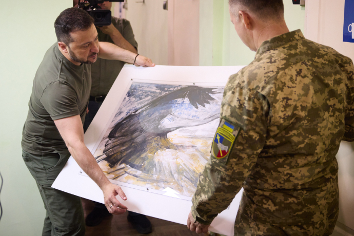 Нагородив генерала Залужного іменною вогнепальною зброєю. Генерал-полковнику Сирському подарував картину, яка відображає подвиг українських воїнів і повагу до них".