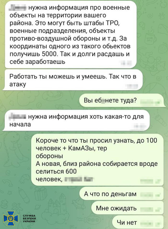 Після того як російський агент оселився в одному з населених пунктів області, він почав збирати інформації про місця базування підрозділів ЗСУ. Насамперед намагався виявити бойові позиції української протиповітряної оборони і встановити локації місцевих штабів тероборони.