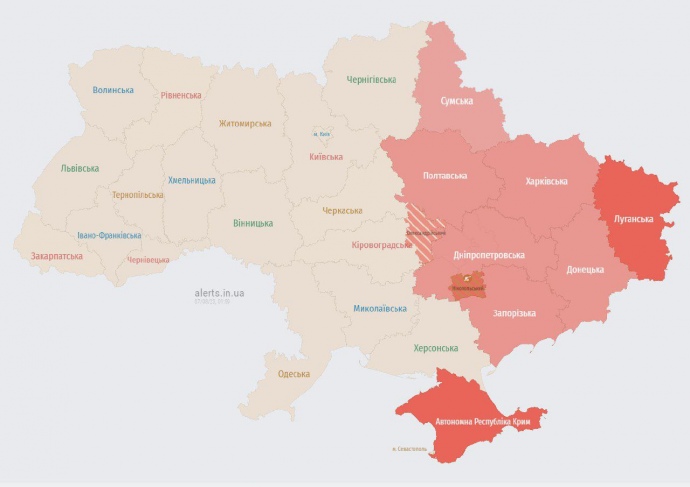 Зокрема, тривога була оголошена в Харківській, Запорізькій, Дніпропетровській, Донецькій, Полтавській, Сумській областях.