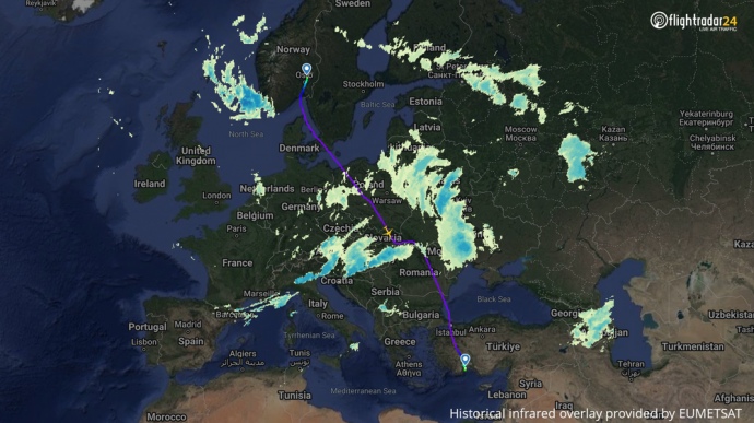 Деталі: Повідомляється, що літак Airbus A320-200 турецької авіакомпанії BBN Airlines прямував з Осло до Анталії. Його маршрут, де зафіксовано потрапляння в закритий через війну український повітряний простір, відображено на сайті Flightradar24.