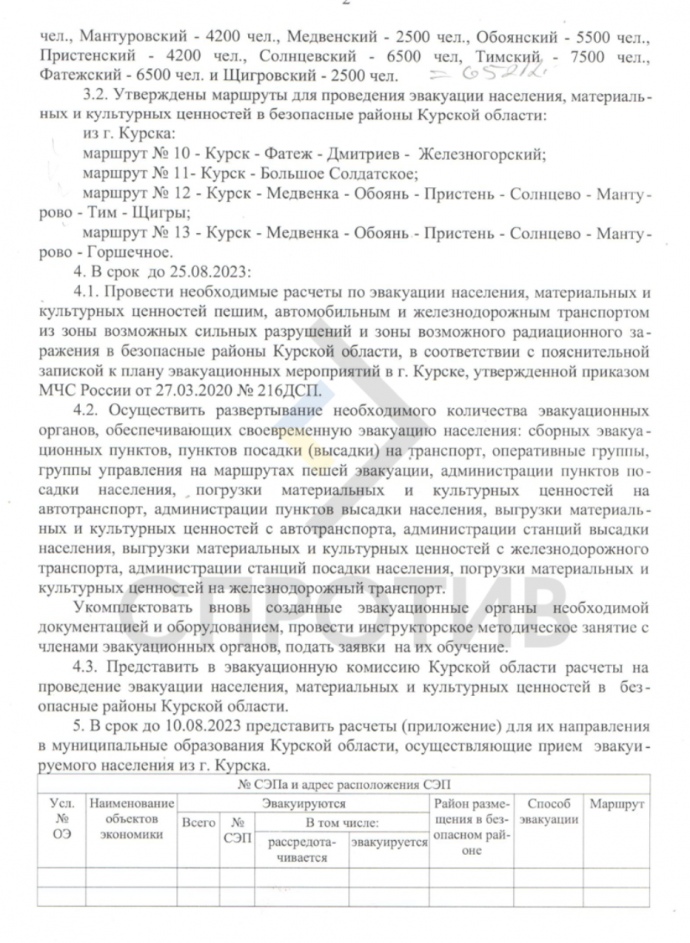 Зокрема, людей планують вивозити з Курська та околиць на північ області, до населених пунктів Жєлєзногорскій, Большое Солдатскоє, Щігри, Горшечноє.