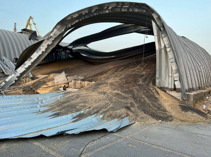 Внаслідок ворожої атаки в Одеській області постраждали складські приміщення та зерносховища на одному з портів Дуная.