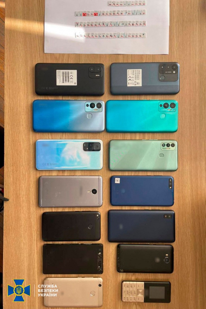Під час обшуків за адресою проживання фігурантки виявлено 20 мобільних телефонів, планшет та 64 sim-карти, які вона постійно змінювала для маскування оборудки.