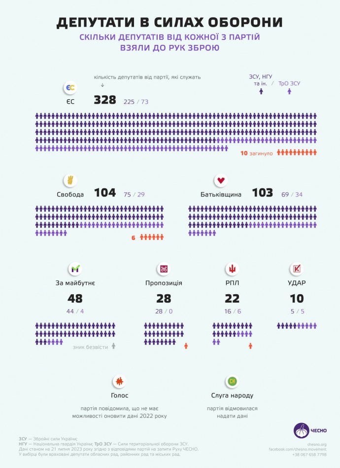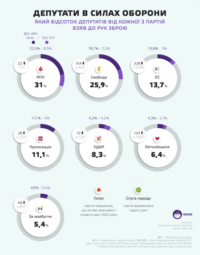 Чесно зазначає, що низка обласних та міських рад надала свої дані щодо депутатів на фронті та у теробороні − їх оприлюднять найближчим часом.