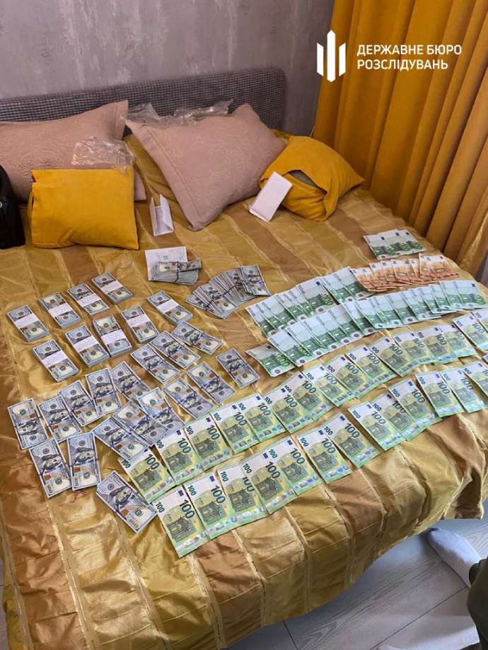 Серед вказаних коштів які, за словами дружини підозрюваного є їхніми особистими збереженнями, виявлено 1700 доларів США, які були раніше передані в якості неправомірної вигоди.