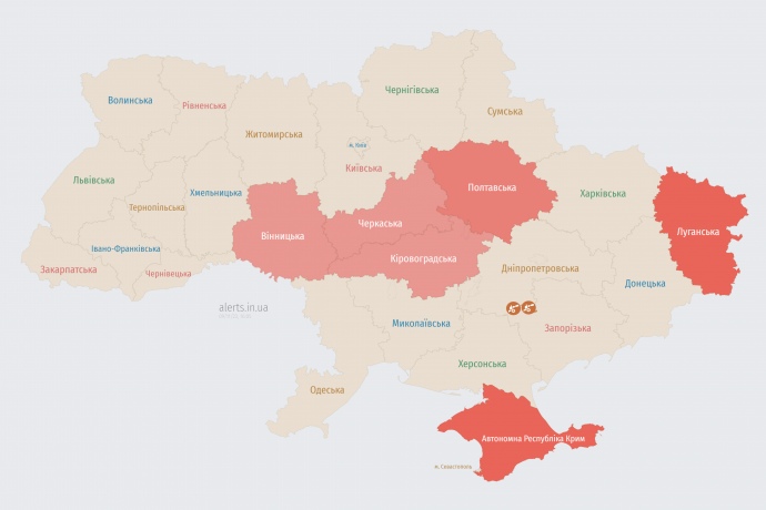 О 4.06 повітряна тривога оголошена в Херсонській та Миколаївській областях. Вона пов’язана з активністю ворожої тактичної авіації в акваторії Азовського моря.