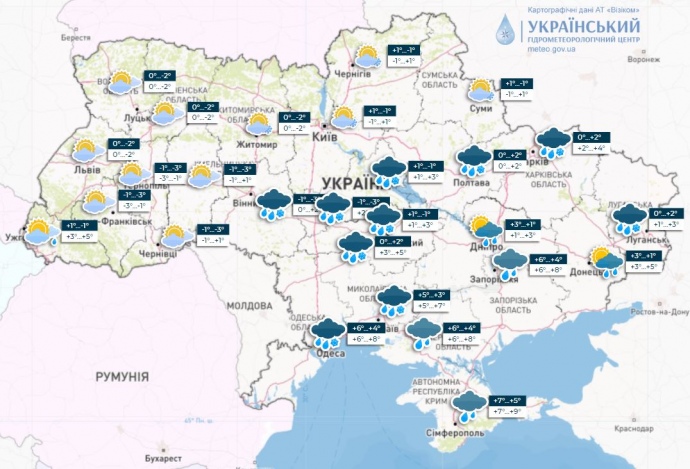 Температура повітря становитиме вночі 0+5 градусів, на півдні до +9 градусів, вдень передбачається +4+9 градусів, у південній частині та на південному сході +9+12, в Криму до +14 градусів.