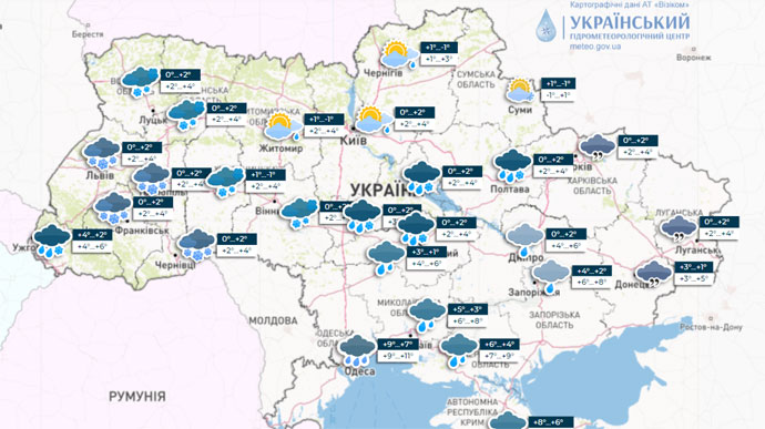 У найближчі дві доби в Україні очікується погіршення погодних умов − зокрема, у західних областях дощ зі снігом, на решті території − дощі.