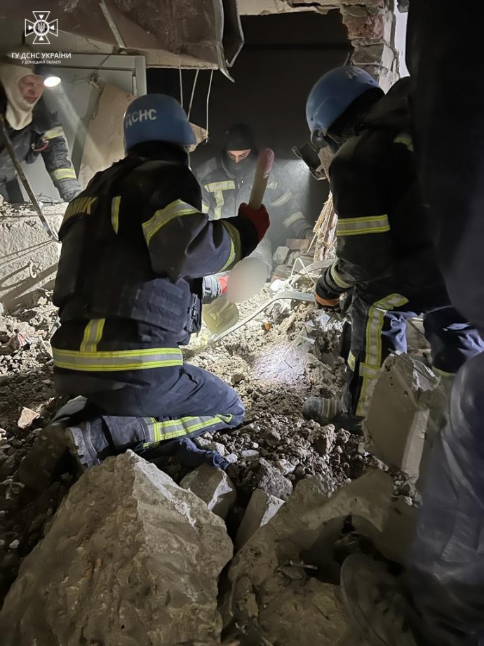 Дослівно ДСНС: "Селидове. Наразі відомо вже про двох загиблих. Тіло ще однієї особи дістали рятувальники з-під завалів частково зруйнованої лікарні".