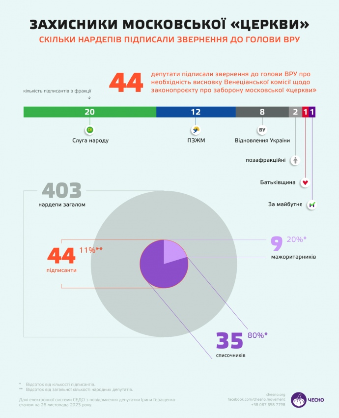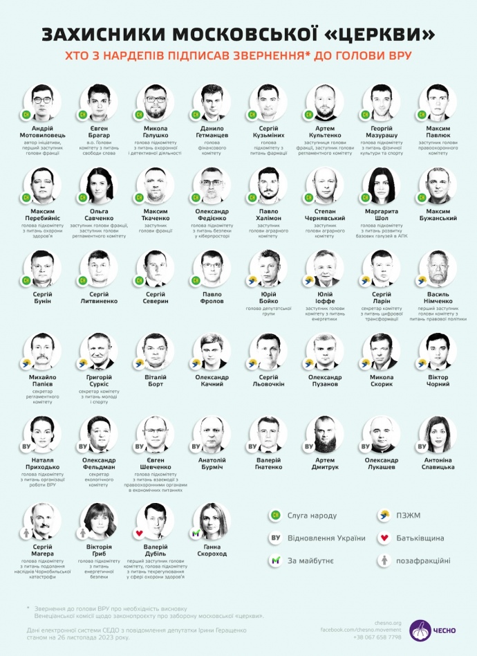 Журналісти дослідили, що з 44 депутатів, які блокують закон про заборону Московського патріархату – переважна більшість членів раніше забороненої проросійської фракції "ОПЗЖ", майже половина підписантів – це нардепи "Слуги народу".