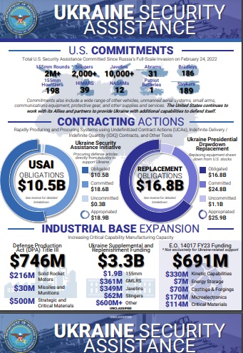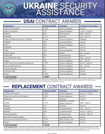 Коли засоби вилучаються з наявного у США інвентарю, їх необхідно замінити, щоб підтримувати власну готовність військових підрозділів США. Станом на середину листопада відомство виділило майже $17 млрд на закупівлю заміни обладнання, яке було відправлено в Україну зі складів США".