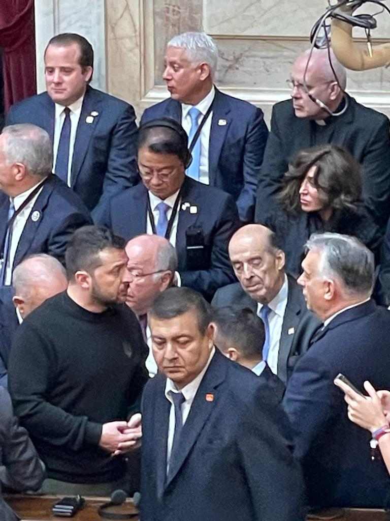 Президент Володимир Зеленський коротко поспілкувався з прем’єром Угорщини Віктором Орбаном під час церемонії інавгурації новообраного президента Аргентини.
