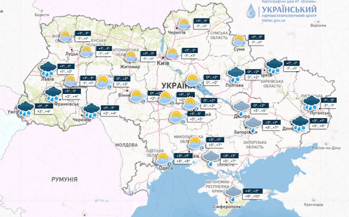 Деталі: Температура повітря вночі та вдень від 3° морозу до 2° тепла, вдень у південній частині 3-8° тепла.
