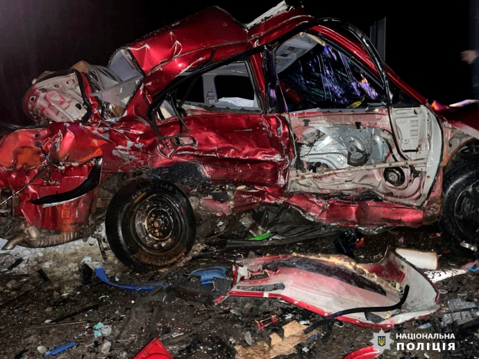 Дослівно: "Внаслідок ДТП 27-річний водій "Hyundai Elantra" та його 23-річна дружина загинули на місці. 37-річного водія та 34-річного пасажира "Skoda Fabia" госпіталізували до лікарні".