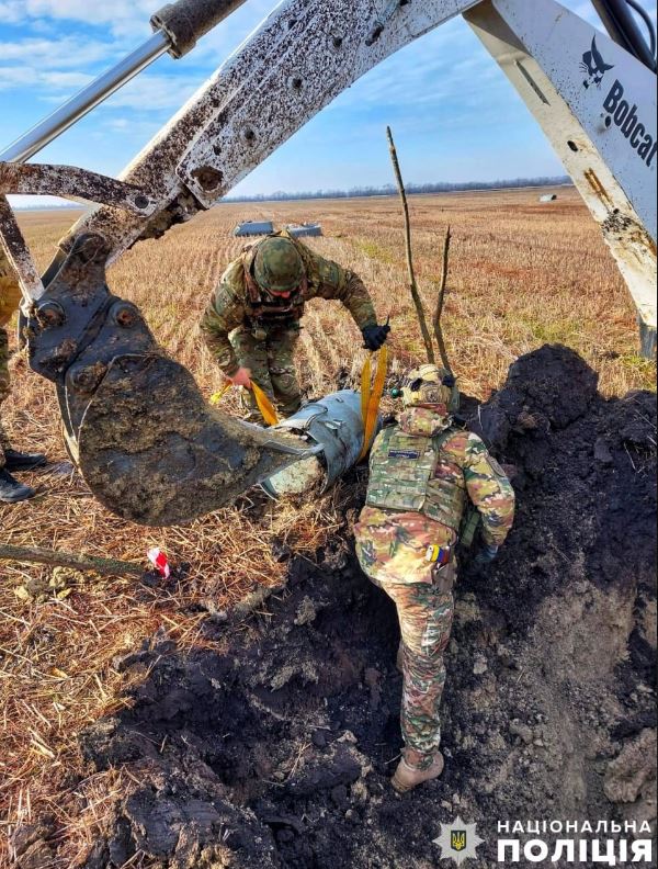 Фахівців вибухотехнічної служби Національної поліції підрозділів Херсона та Чернігова продемонстрували знищення бойової частини крилатої ракети Х-101 окупантів у Бериславському районі на Херсонщині.