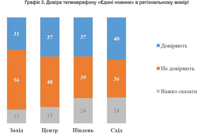 Дещо більш критичні до телемарафону "Єдині новини" мешканці Заходу і Центру. Водночас фактично у всіх регіонах йому довіряють не більше 40% опитаних.