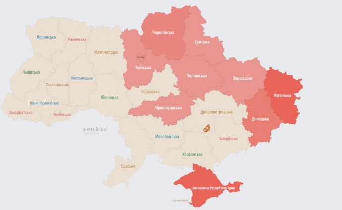 Деталі: Станом на 22 годину повітряну тривогу оголосили в таких областях: