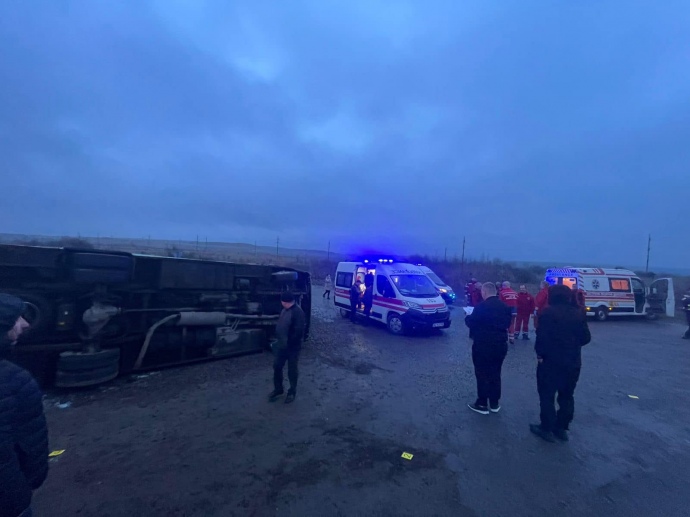 На Львівщині перевернувся рейсовий автобус, 16 людей постраждали