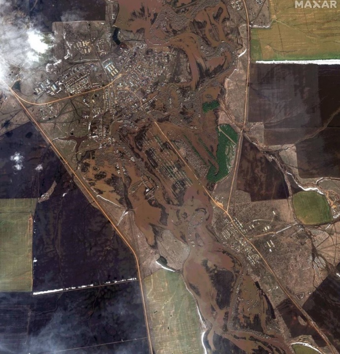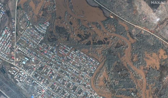 Компанія Maxar опублікувала супутникові знімки наслідків затоплення в Оренбурзькій області РФ. У Кремлі вважають, що прогноз щодо повеней несприятливий і рівень води продовжить зростати.