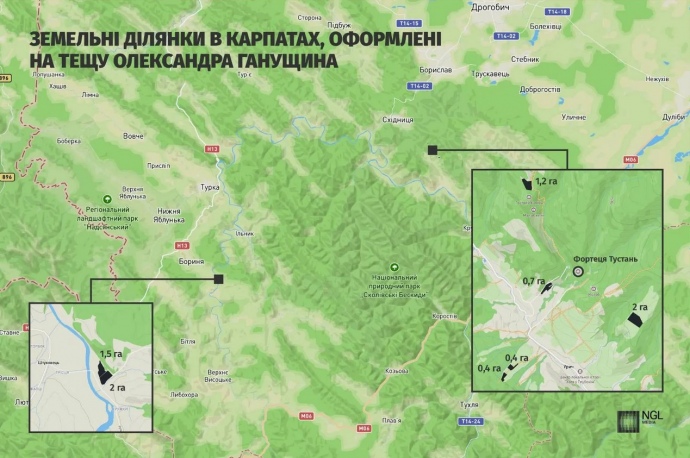 Деталі: Як з'ясували журналісти NGL.media, земля навколо фортеці Тустань опинилася у власності тещі ексглови облради завдяки рішенням міськради міста Сколе, з мером якого Миколою Романишиним у Ганущина склалися особливо довірчі стосунки. Наприклад, у липні 2019 року Ганущин з дружиною були почесними гостями на весіллі доньки Романишина. Саме підпис Романишина стоїть на рішеннях Сколівської міськради і про безкоштовне виділення землі в Уричі, яка в результаті опинилася у власності тещі Ганущина.