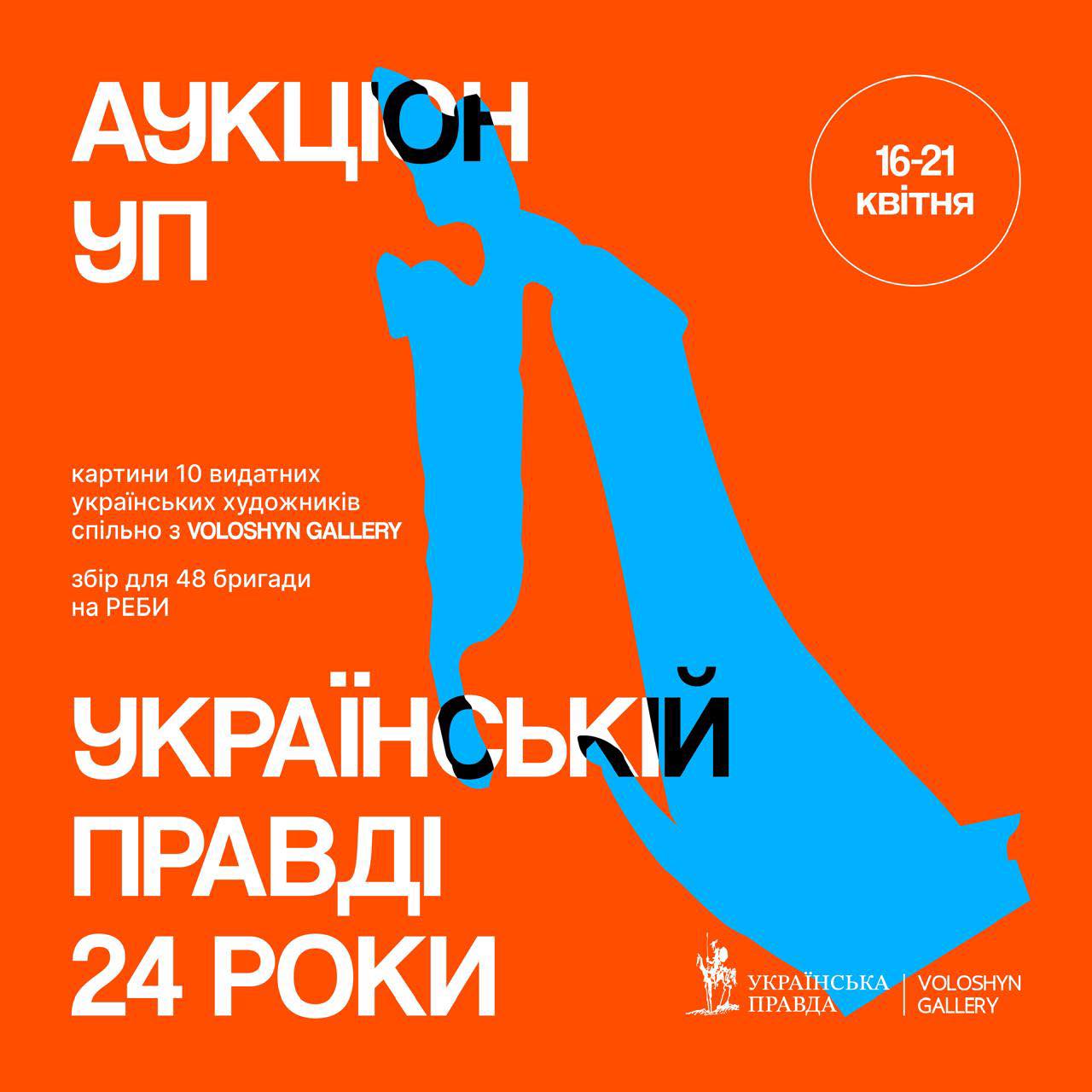 З нагоди свого 24-річчя видання "Українська правда" у партнерстві з Voloshyn Gallery оголосили благодійний тихий аукціон. Виручені кошти будуть витрачені на купівлю РЕБ-ів для 48-ої бригади.
