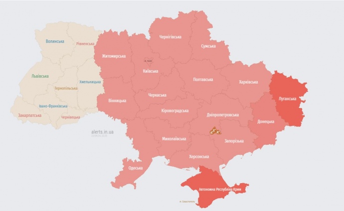 В частині областей України ввечері 22 квітня оголошували повітряну тривогу, Повітряні сили попереджали про ракету.