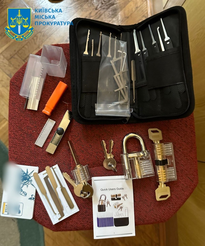 Під час обшуків у зловмисників вилучили 70 тисяч доларів, 1 тисячу євро, зброю та набої, посвідчення різних правоохоронних органів, органів державної влади та медіа з ознаками підробки, мобільні телефони, банківські картки, набори відмичок, 4 автомобілі тощо.
