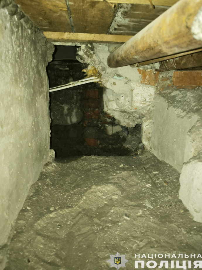 Підозрювані завчасно викопали та укріпили під землею тунель з території дитячого навчального закладу до суміжного з банком підвального приміщення багатоповерхового будинку, де за допомогою ручних та ударних інструментів підготували отвір у стіні безпосередньо до приміщення сховища.