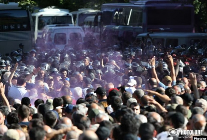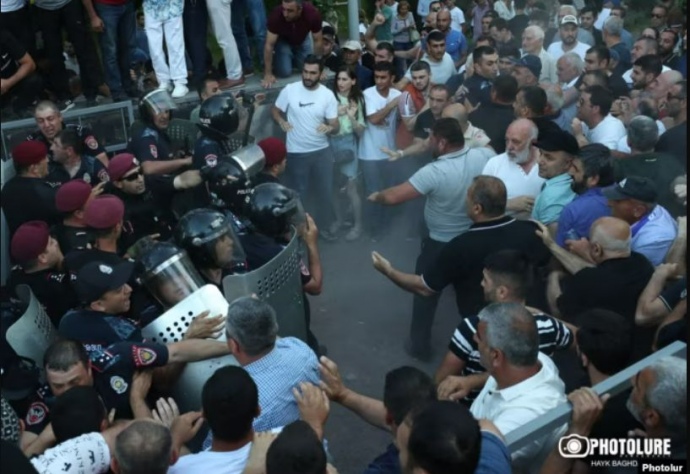 Під час чергової антиурядової демонстрації під будівлею парламенту Вірменії в Єревані протестувальники почубились із поліцією, в результаті чого є поранені з обох сторін і затримані.