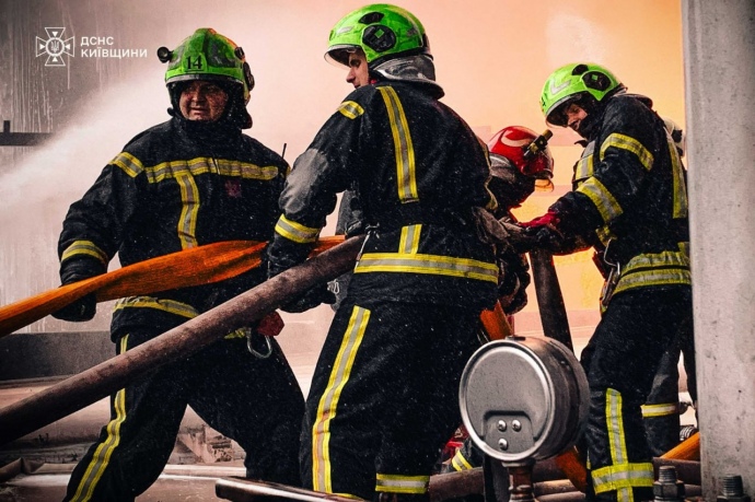 Сотні рятувальників вже півтори доби гасять пожежу після удару РФ по Київщині