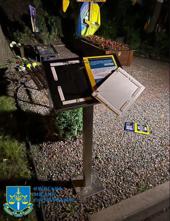 Нагадаємо: Перед цим військовослужбовиця Аліна Михайлова повідомила, що У Києві на Аскольдовій могилі у ніч на 20 червня невідомі пошкодили могили загиблих військових Дмитра "Да Вінчі" Коцюбайла, Павла Петриченка та Андрія "Джуса" Пільщикова. Вона опублікувала ролик, у якому говорить, що вандали побили портрети та розмалювали прапори на могилах загиблих, а також пошкодили лампадки.