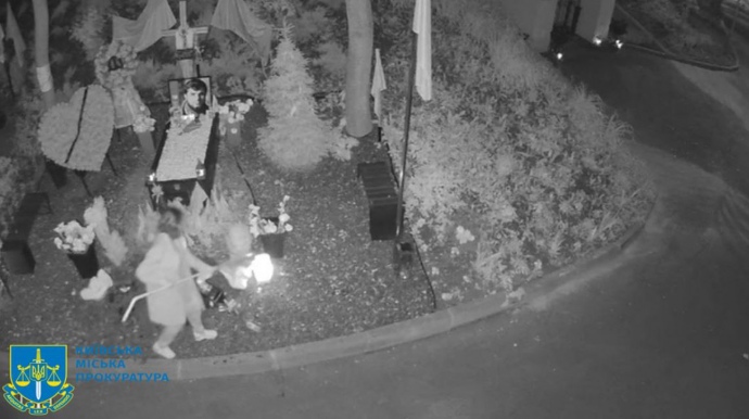 Деталі: Правоохоронці оприлюднили скриншот з відеокмер знищення могил невідомою полеглих захисників.